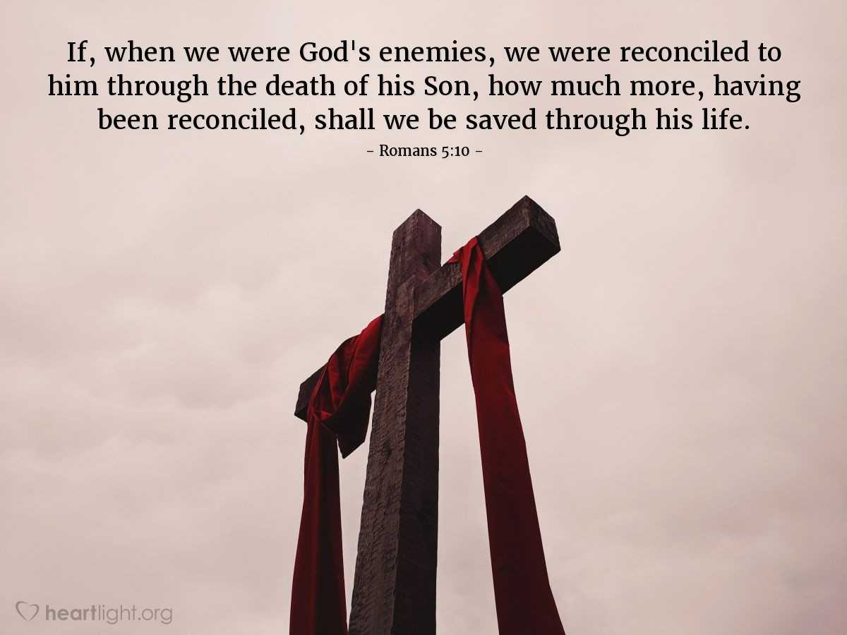 Se, quando eravamo nemici di Dio, ci conciliammo con lui attraverso la morte di suo Figlio, quanto più, essendo stati riconciliati, saremo salvati attraverso la sua vita. —Romani 5:10