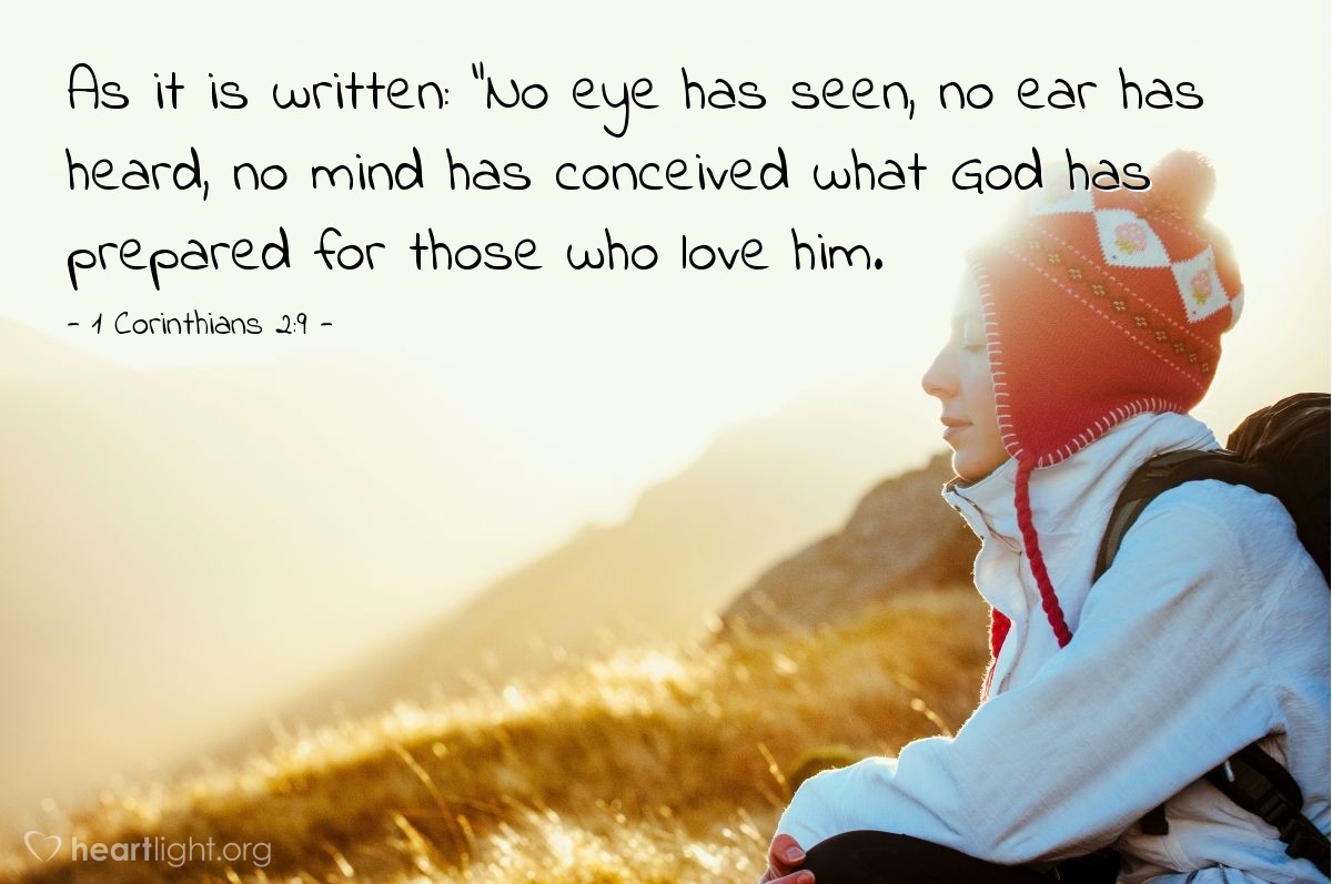 Come è scritto: "Nessun occhio ha visto, nessun orecchio ha sentito, nessuna mente ha concepito - ciò che Dio ha preparato per coloro che lo amano..." —1 Corinzi 2:9
