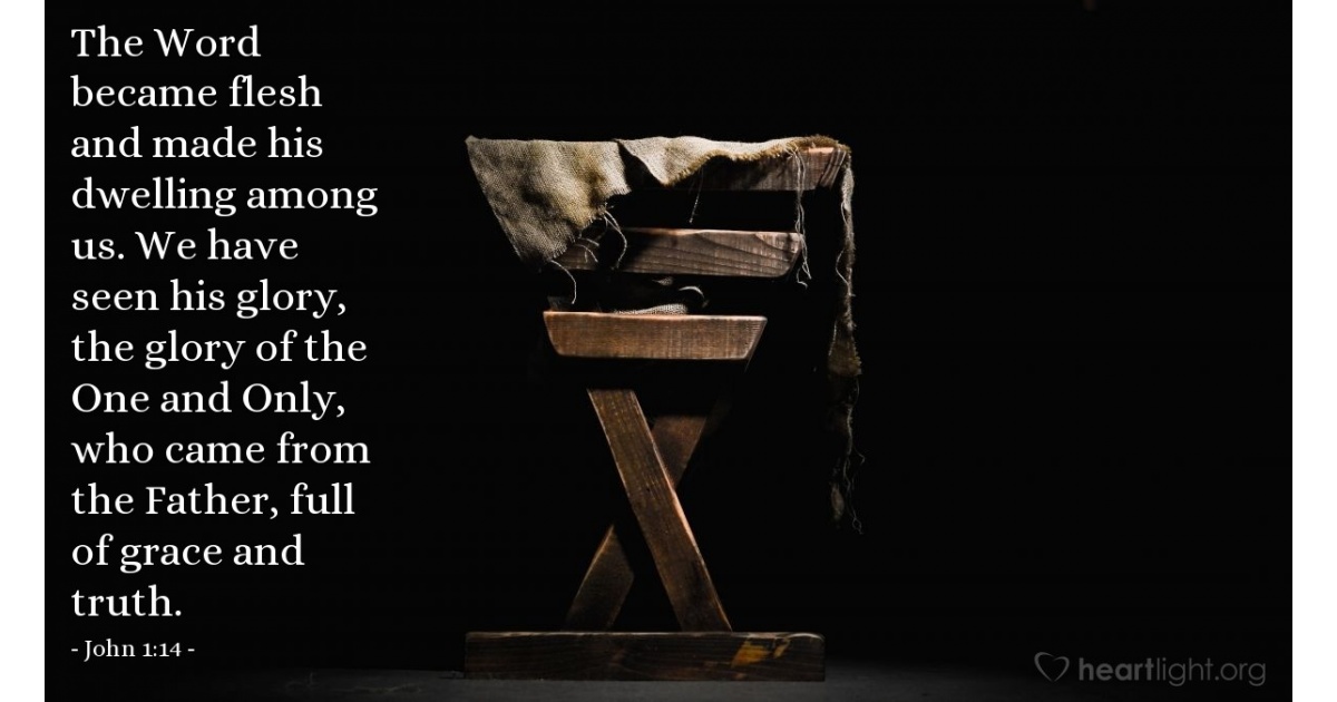 La Parola divenne carne e fece la sua dimora tra noi. Abbiamo visto la sua gloria, la gloria dell'Unico e Solo, che è venuto dal Padre, pieno di grazia e verità. —Giovanni 1:14