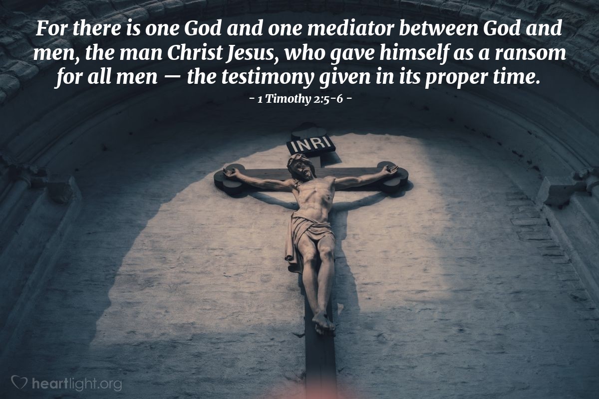 Perché c'è un Dio e un mediatore tra Dio e gli uomini, l'uomo Cristo Gesù, che si è dato come riscatto per tutti gli uomini - la testimonianza data a suo tempo. —1 Timoteo 2:5-6
