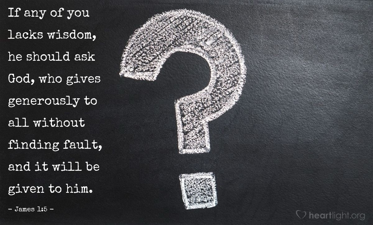 Se qualcuno di voi manca di saggezza, dovrebbe chiedere a Dio, che dà generosamente a tutti senza trovare colpa, e sarà data a lui. —Giacomo 1:5
