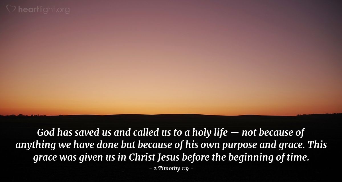 Dio ci ha salvati e ci ha chiamati a una vita santa, non per tutto ciò che abbiamo fatto, ma per il suo scopo e la sua grazia. Questa grazia ci è stata data in Cristo Gesù prima dell'inizio dei tempi. —2 Timoteo 1:9