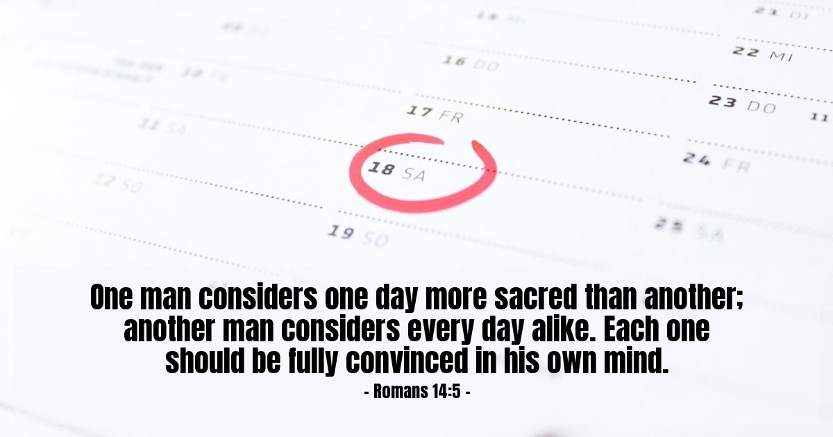 Un uomo considera un giorno più sacro di un altro; un altro considera ogni giorno allo stesso modo. Ognuno dovrebbe essere pienamente convinto nella propria mente. —Romani 14:5