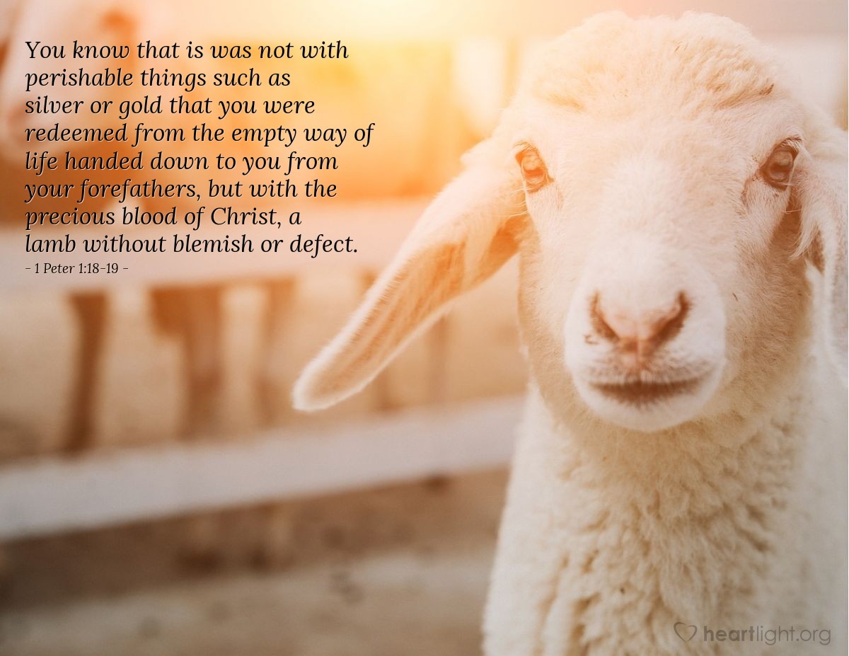 Sapete che non è stato con cose deperibili come l'argento o l'oro che siete stati redenti dal vuoto modo di vivere tramandatovi dai vostri antenati, ma con il prezioso sangue di Cristo, un agnello senza macchia né difetto. —1 Pietro 1:18-19